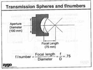 Every transmission sphere has a designated F-number (F/#)- the ratio of its focal length to its aperture diameter. The surface under test, in turn, has a radius of curvature (R/#) derived from its geometry. To achieve proper focus and coverage, the R/# of the surface must be greater than or equal to the F/# of the sphere. If a sphere’s F/# is too fast relative to the surface, the converging beam may intersect the part or housing, risking mechanical collision or measurement distortion. A simple rule of thumb: R/# > F/# ensures safe clearance and accurate illumination.