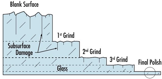 Optical manufacturing follows a deliberate and disciplined principle: each step must remove the damage introduced by the previous step.